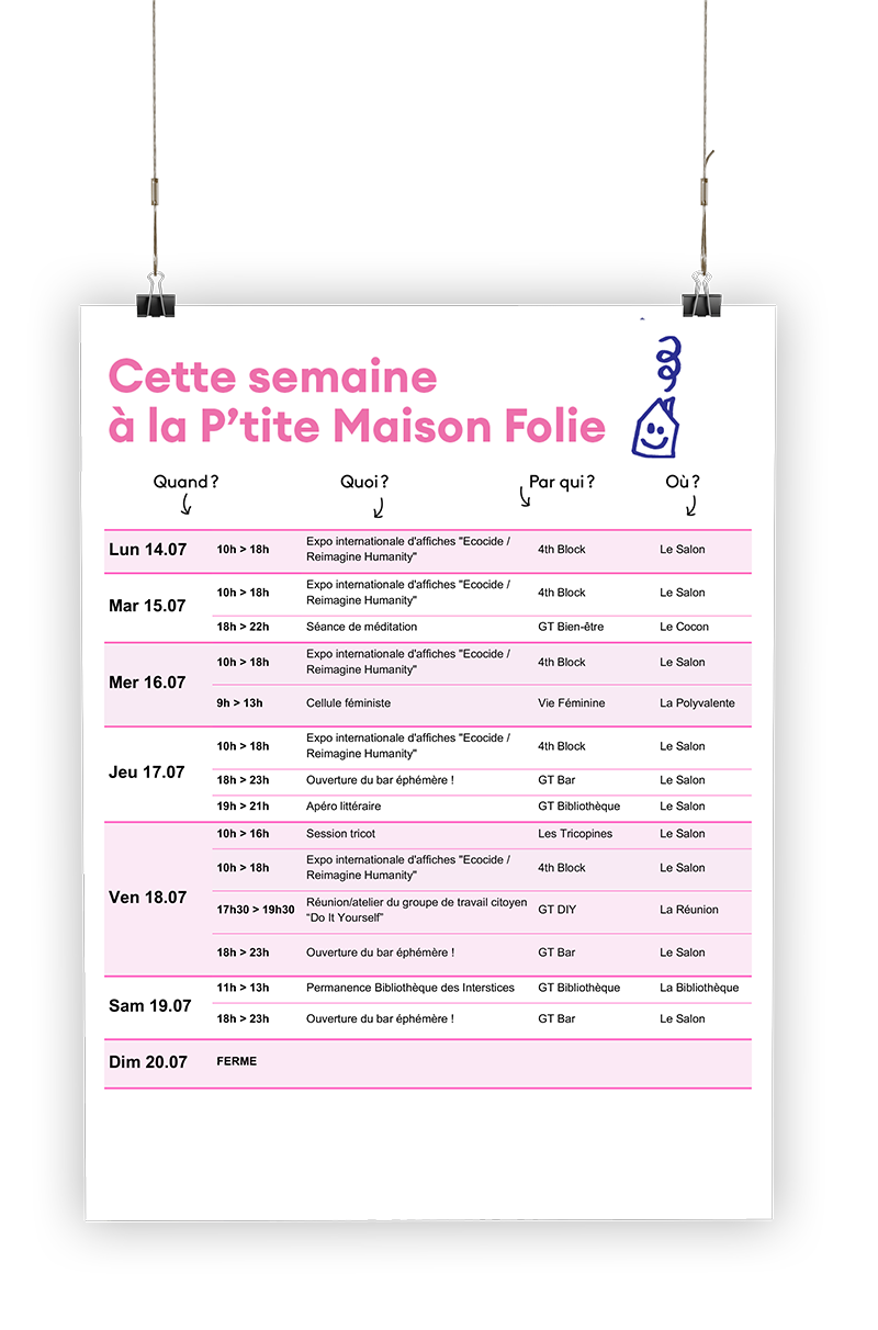 Téléchargez notre agenda de la semaine et nos manquez aucun événement à la P'tite Maison Folie ! 🙂